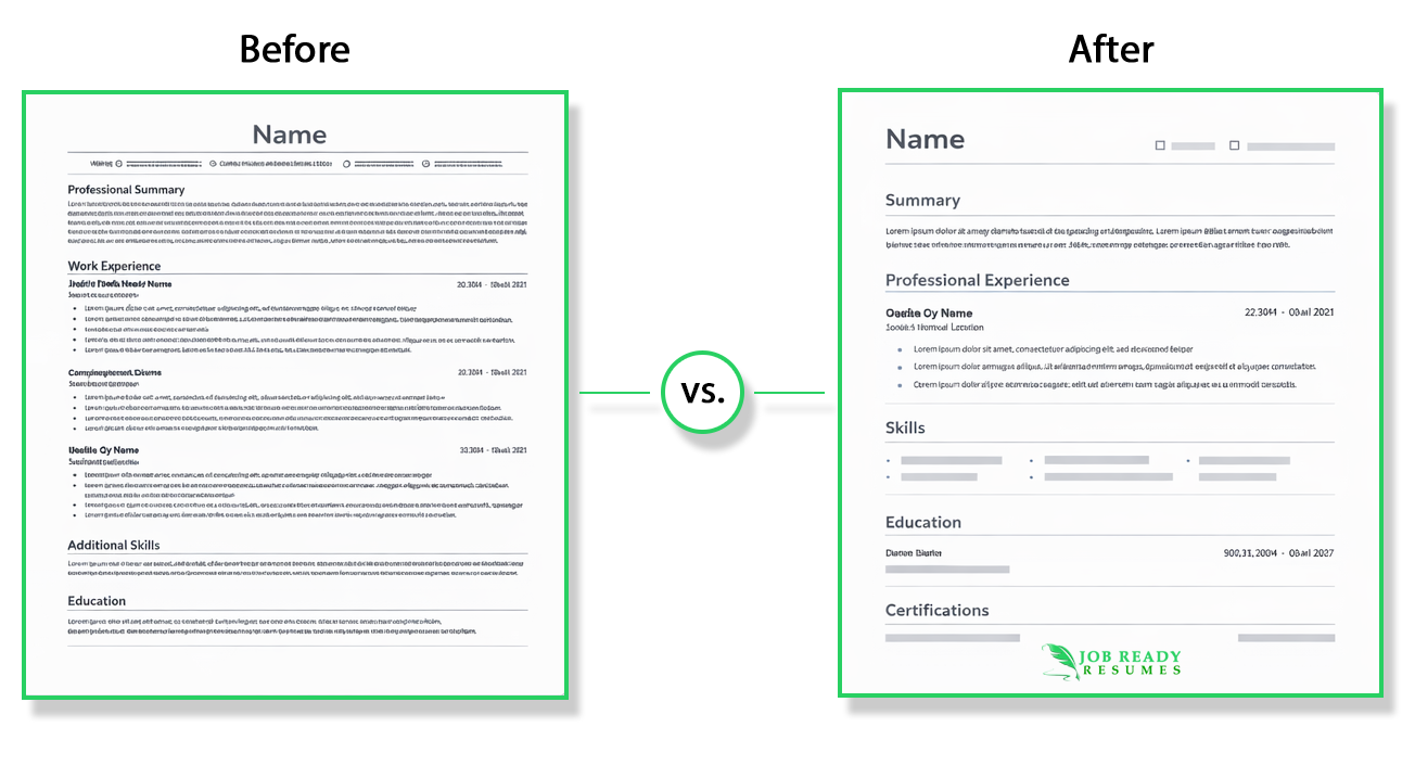 Job Ready Resumes structures your resume to work with Applicant Tracking Systems without sounding robotic. The result is ATS‑friendly formatting that still reads naturally to real people.